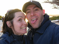 Here we are, skin-cancer wary and enjoying our time away from the hustle and bustle. At Pfeiffer Beach there were some beautiful rock formations, to Chris's delight, and tide pools, and a little more tourists that we cared for. But how else would we have gotten our picture taken without other people?The tide pools had a colony of little hermit crabs, crawling happily here and there. They looked so much more active and content in there than any other captive hermit crabs I have met.